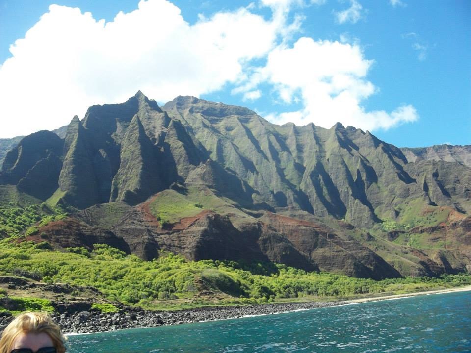 This picture was taken of the North Shore of Kauai from Captain Andy’s tour boat. The weather was very cooperative, so we traveled farther up the coast than typical. Saw the sights and even had an introduction to snorkeling.